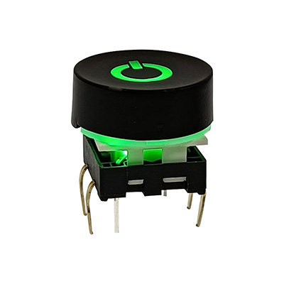 16MM圓形帶燈按鈕開關(guān)-鐳雕電源符號